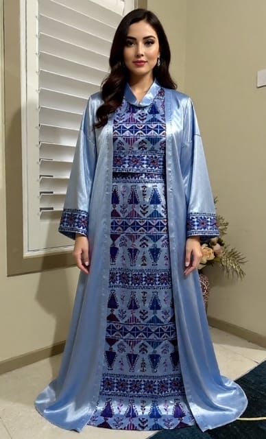 The Chic Embroidered Thobe and Cardigan Tatreez (long sleeve) , symbolizes the traditional and cultural women’s attire of Palestine. Additionally, Palestinian women deeply value Thobes, as they obviously adorn these traditional dresses with complex tatreez embroidery. Each Thobe features a unique pattern that often signifies the wearer’s regional origin within Palestine.